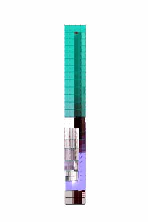 vertical fins are provided as sunshades only in the base, the entire south-facing